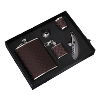 小型ステンレスレザーワインボトルセット,ポータブルミニヒップフラスコファンネルとワイングラス